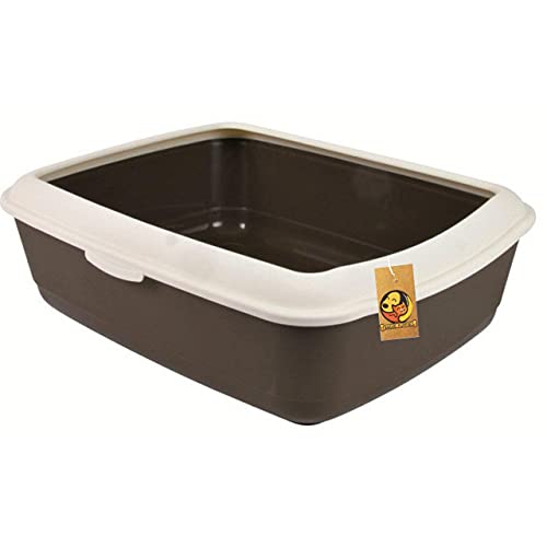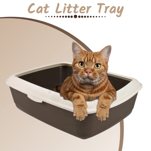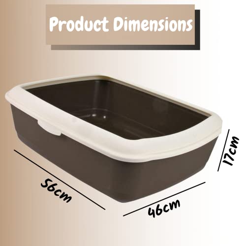 Foodie Puppies Rectangle Cat Litter Tray (56 x 46 x 17 cm) with Rim, Reduces Odor, Perfect Starter for Toilet Training Your Kitten and Puppies (Large, Brown)