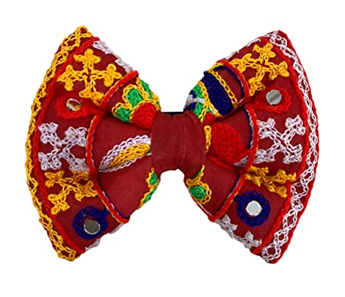 Specification: For The Fur Kids Rangeelo Dog Bow Tie: Traditional Mirror Work Dog Bow Tie for Weddings & Festivals (Red)