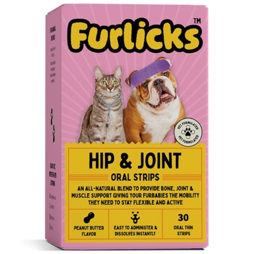 Furlicks Hip & Joint Supplement for Dogs & Cats | Marine Collagen & Calcium for Joint Mobility, Lubrication, Bone Support & Pain Relief (30 Oral Dissolving Strips)