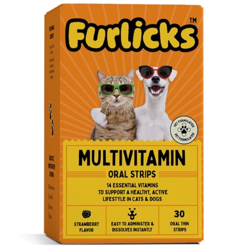 Furlicks Multivitamin for Dogs & Cats | Vitamins C, K2, B, D, A, Omega, Calcium & Zinc for Growth & Development, Heart, Liver & Joint Health, Performance & Immunity (30 Oral Dissolving Strips)
