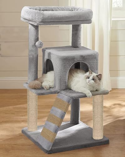 MATERIAL – Constructed with soft fur fabric in an elegant grey colour, Designed with a sturdy Wooden base and reinforced sisal/jute rope scratching posts, ensuring stability and longevity even during vigorous play. Designed with your cat’s comfort and safety in mind, using non-toxic materials and providing cozy retreats for rest and relaxation.