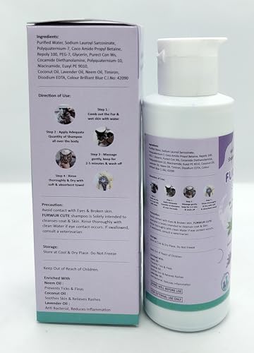 Specification: FURWUR Cute Anti Ticks and Flea Shampoo for Cats 75ml, with Lavender Oil, Coconut Oil & neem Oil