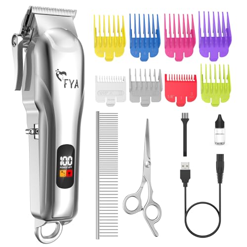 FYA Dog Clippers for Grooming, Low Noise, Rechargeable Cordless Pet Hair Clippers for Thick Heavy Coats, Dog Trimmer Grooming Kit, Pet Shaver for Small and Large Dogs Cats