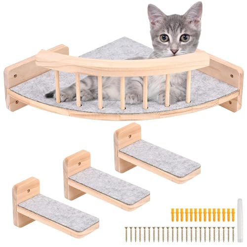 Specification: GONCHAK HUB Wall Mounted Cat Hammock Cat Wall Shelves with 3 Steps, Cat Wall Shelf and Steps with Plush Covered,Solid Wood Cat Wall Furniture Cat Climbing Shelf for Climbing Sleeping Playing