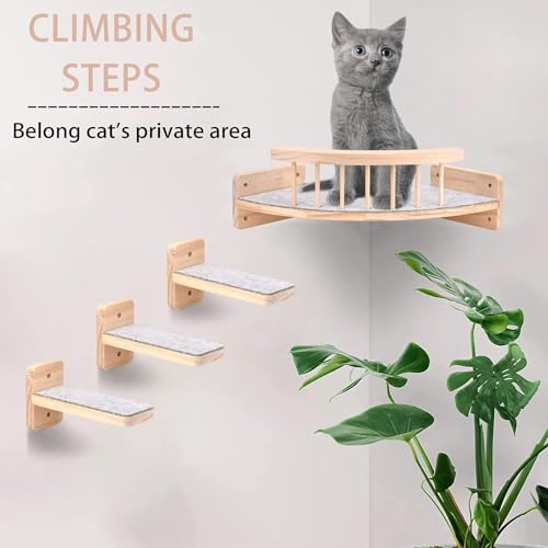 SIMPLE AND CONVENIENT ASSEMBLY: With assembly accessories, the assembly process is very simple, you can easily assemble and enjoy the fun of assembly. Just tack the cat furniture to wall or a corner with tool, and install the three steps,then your cat have an area for itself.