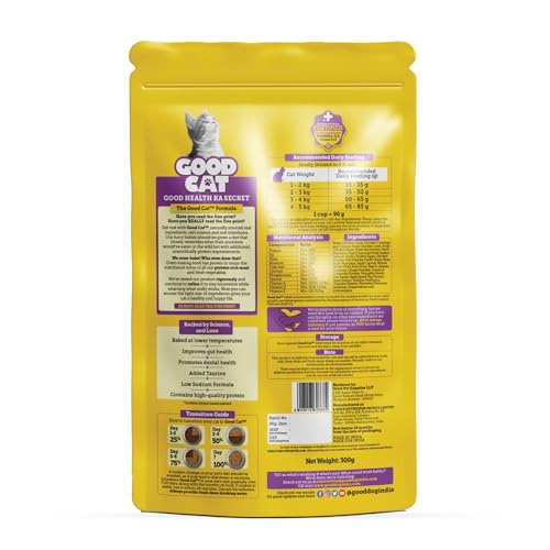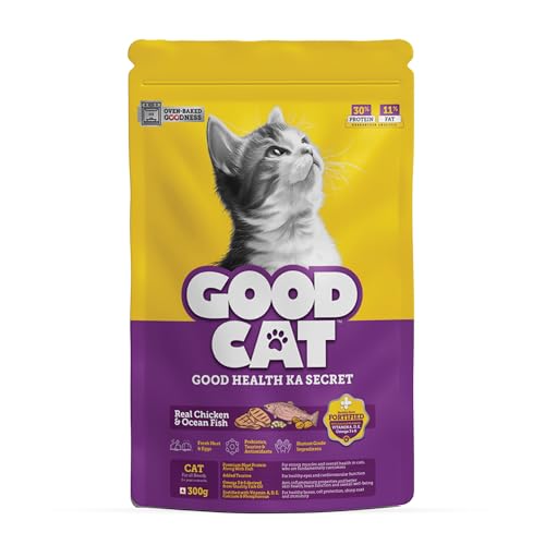 Specification: Good Cat Real Chicken & Ocean Fish Cat Food | Gently Oven Baked Kibbles/Contain Tuna, Mackerel, Indian Salmon | Taurine for Healthy Eyes | Fortified with Vitamin A, D, E & Omega 3 & 6 | 300g