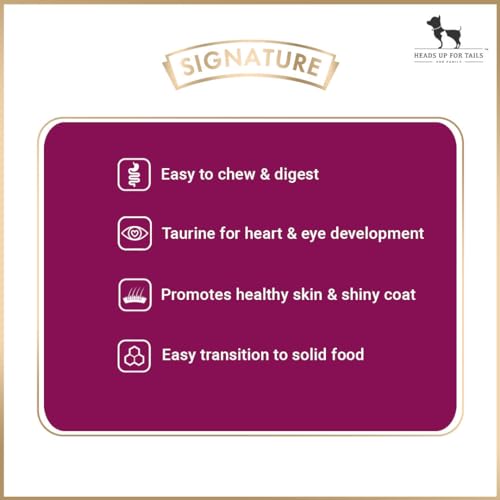 Formulated by veterinarians and nutritionists in the U.S.A, Signatures Grain Zero hypoallergenic Cat Food is complete nutrition created for the specific needs of newborn, growing kittens, gestating & lactating mother cats. Made with ocean fish, sardine and mackerel, this easy to chew dry kibble help provide the mother cat proper nutrition during her pregnancy and lactation as well as gives her kittens a smoother transition from their mothers milk to solid food. Ingredients and Benefits: Omega 3 and 6 fatty acids for a shiny coat and healthy skin Taurine, an essential amino acid for heart and eye health Antioxidants & vitamins to support kittens natural defences, growth and development DHA to build a strong foundation and brain development, starting in the womb and continuing throughout a pregnant cats full term. Nutritional Analysis: Protein (Min) 30.0%, Fat (Min) 16.0%, Crude Fiber (Max) 4.5%, Moisture (Max) 10%