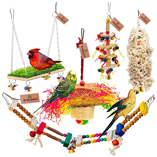 Specification: GREENBIRDS Pack of 5 Pcs Bird Colorful Chewing Foraging Shredder Toys, Grass Swings, Ring Perch, Parrot for Bird & Parrot Parakeets, Conures, Cockatiel, Lovebird