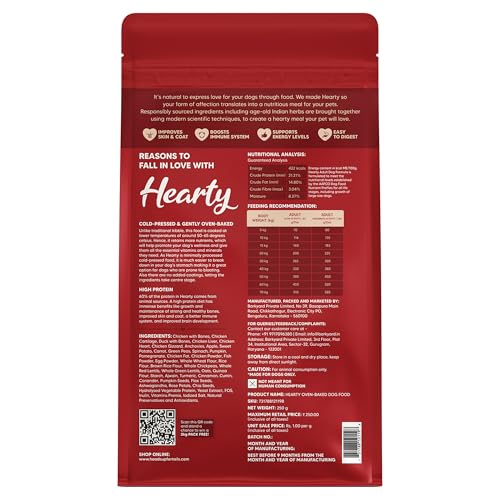 Specification: Hearty by Heads Up For Tails – Oven Baked Chicken & Duck with Brown Rice Adult Dog Dry Food for All Breeds – 250 gm | Human Grade Ingredients | Farm Fresh Dry Food | No Added Flavours