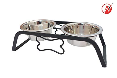 Naaz dog bowl with stand features durable Ruff N Tuff stainless steel dog bowls with gorgeous finishes Wrought Iron Stand with attractive Bone shape Design.. 1 quart ( 900ml x 2 pet bowls ) and 2-quart ( 1600ml )