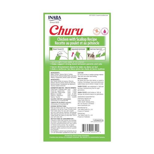 KEEP YOUR FELINE HYDRATED WITHOUT ADDING CALORIES: Each delicious, creamy Churu tube contains 91% moisture and only 6 calories (a tenth of the calories of traditional dry cat treats), which makes it a healthy snack you can feel good about feeding