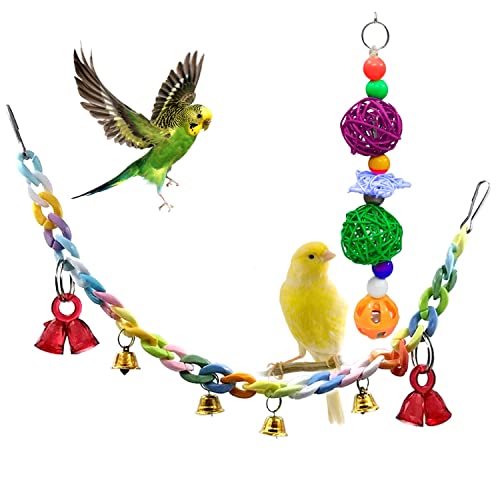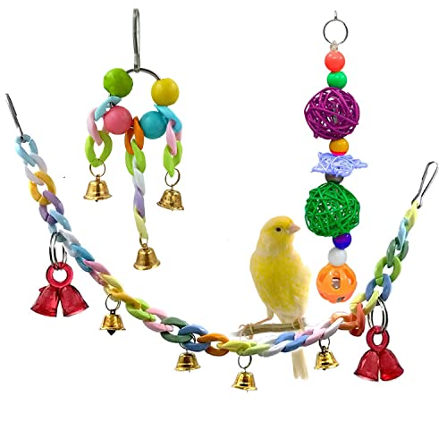Specification: Jainsons Pet Products Bird Toys Parrot Chew Toy with Colorful Bell and Bird Cage Hanging Swing Toy for Small Parakeets Cockatiels, Conures, Macaws, Lovebirds, Finches Set of 3 pcs