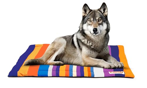 Specification: KIBBO Pet Mat for Dogs and Cats | Lightweight and Portable | Durable, Washable, Anti Slip Base and Stripe Design | Suitable for Large & Extra Large Breeds, Orange Purple (117×73 CM)