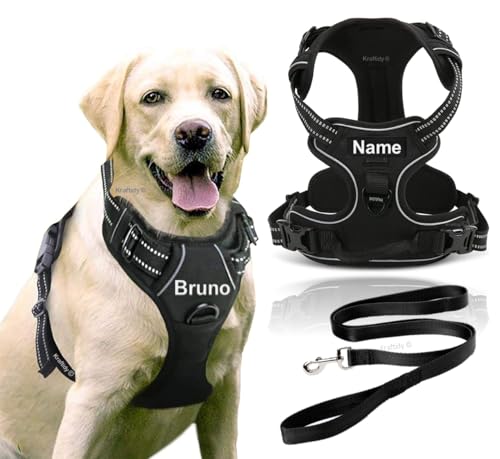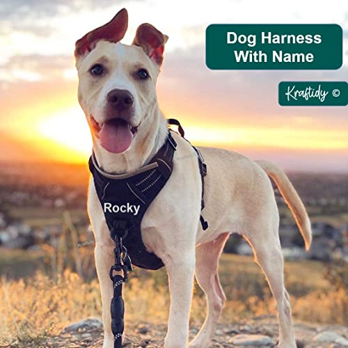Kraftidy Dog Harness with Name id Customized for Dogs Large Medium Small Puppy All Breeds No Pull Harness Reflective Vest Harness Belt Adjustable with Personalized Dog Name (Black) (Large Dogs)