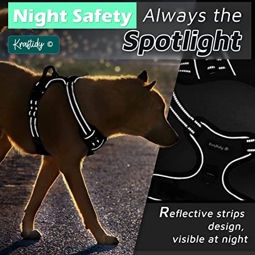 Specification: Kraftidy Dog Harness with Name id Customized for Dogs Large Medium Small Puppy All Breeds No Pull Harness Reflective Vest Harness Belt Adjustable with Personalized Dog Name (Black) (Large Dogs)