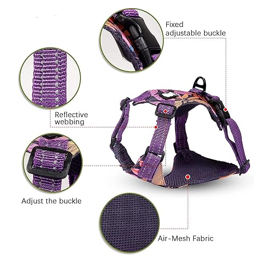 Easy to Wear: This vest harness is easy to install and remove. There are 2 safety buckles and 2 adjustable length belts on the chest and neck. First you only need to adjust the belt to a larger range , then put it on the pet, buckle the safety buckle, and then adjust it to the most suitable range for the pet.