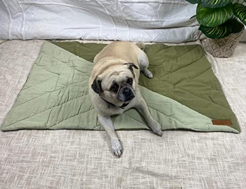 NUEVOS DOGGADIL Cotton Canvas Color Blocked Rectangle Pet Bed Mattress | Washable Padded Pet Bed| Light Weighted Dog Flat Mat (Small) _Mint Green/Olive