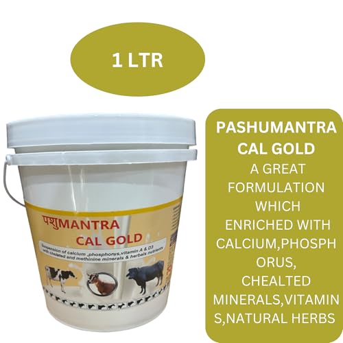 Specification: PASHUMANTRA Cal Gold, (1 LTR) Bucket Calcium for Cow, Buffalo, Goat, Sheep, Horse, cat, Dog, Pig, Milk Enhancer for Diary Animals, Vitamins and Minerals, Calcium Veterinary, Chelated Feed Supplement