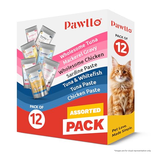 Specification: Pawllo Assorted Pack of All Cat Gravies and Paste | Cat Food | Cat Wet Food | Kitten Food 2-12 Months | Gravy Cat Food | Kitten Wet Food | 12 Pack of 6 Types of Cat Gravies of 70 ml Each (Assorted)