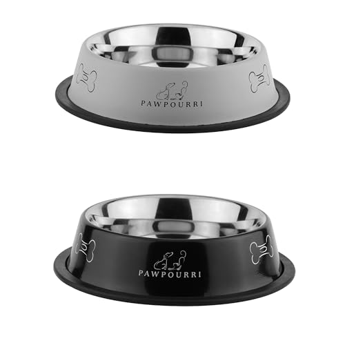 Specification: PAWPOURRI Combo of Anti-Skid Feeding Bowls for Dogs, Cats & Puppy Pet Bowl Pack 2 Stainless Steel Pet Bowl (700 ml Each, Black & White)