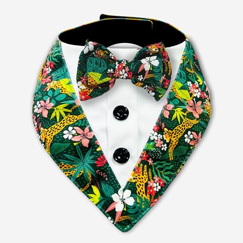 Pawsindia Fully Customizable Dog Tuxedo Bandana | Dog Bandana for Small Dogs | Tuxedo for Dogs | Choose from a Variety of Patterns & Bow Colors (Same Pettern Bow, Jungle)