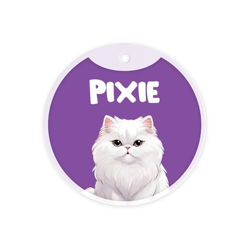 Specification: Pawsindia Personalized Cat Name Tag, Customized Pet ID Tag for Cats with Double Side Waterproof Print, Breed Collection (Purple, White Persian)