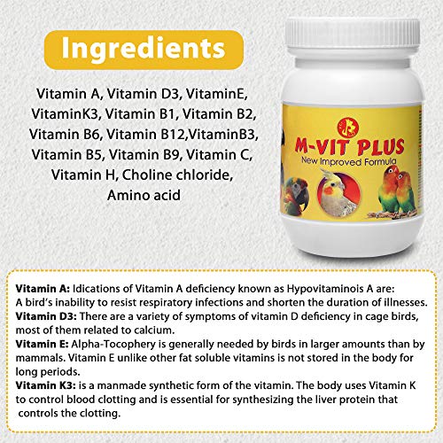 Specification: Pet Care International (PCI) M-VIT Plus || Provide All Essential Vitamins || Healthy Bird Breeding Healthcare || 250grm