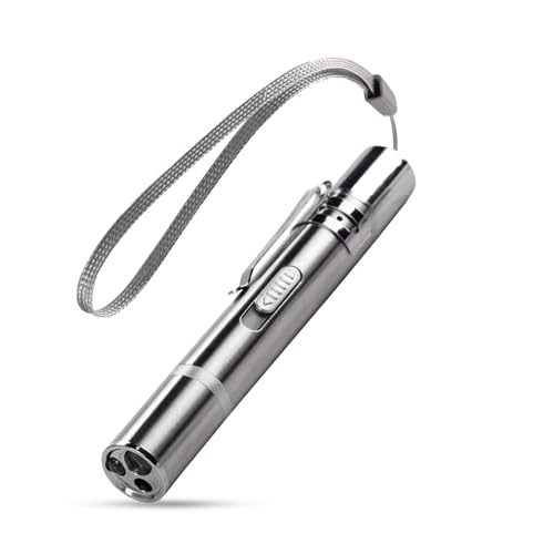 [VERSATILE 3-IN-1 DESIGN] – More than just a toy, this cat laser pen includes a purple light to check your cat’s skin health for issues like fleas, and a white light function that doubles as a handy flashlight for household use or nighttime walks. The design of our laser cat toy is both thoughtful and practical.
