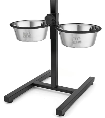 Specification: Pet Clean Adjustable Dog Food Bowl with Stand |Extra Rubber Support |H-Base Elevated Dog Bowl Stand and Two Removable Stainless Steel Bowls 2 X 1500 ml