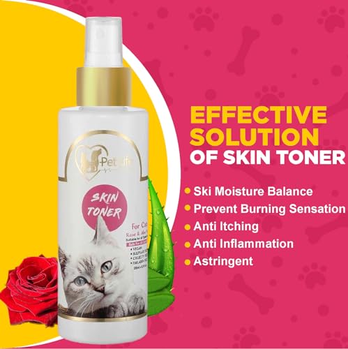Pet Life Pure Organic Skin Toner Spray for Cat Skin Allergy, Redness, Itchiness, Fungal Infection, Restores Skin Health & Moisture – Safe & Effective Cat Friendly Formula for All Cat Breeds – 200 Ml