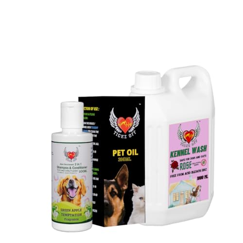 Pet Oil 200ml + Wash 1ltr+ Shampoo 200ml | tickzoff | (-10% Off) (Green Apple Temptation 200ml, Rose 1ltr)