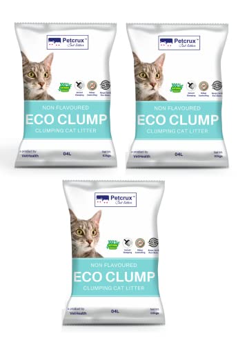 Specification: PetCrux Eco Clump Cat Litter | Natural Bentonite Clay| Natural Ingredients | Superior Odour Control | 99.9% Dust Free Scoopable (for Multiple Cats), 15kg Total – 3 Packs of 5kg