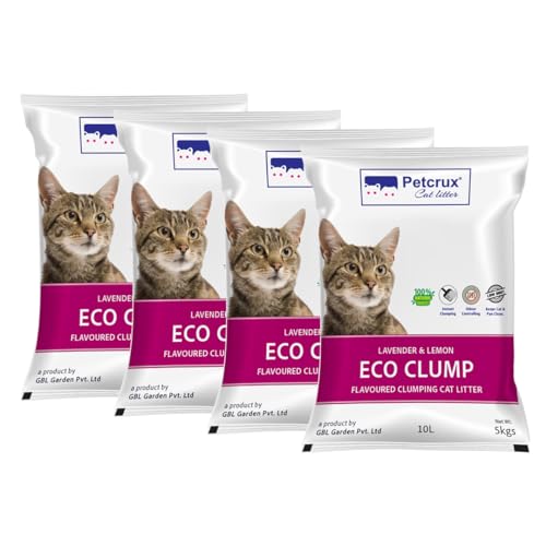 PetCrux Eco Clump Cat Litter | Natural Bentonite Clay | Pet Friendly Lavender Essential Oils | Superior Odour Control | 99.9% Dust Free Scoopable (for Multiple Cats), 20kg Total – 4 Packs of 5kg