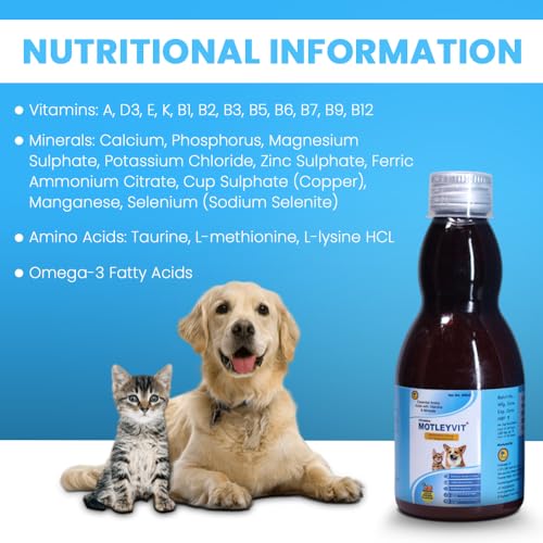 Specification: PETHEEDS Motleyvit Multivitamin Syrup for Dogs & Cats | Amino Acids & Minerals for Skin, Coat, Pet Tonic | Healthy Supplement, Immunity, All Age Group Lucious Chicken Flavor, Pack of 1 (200ml)