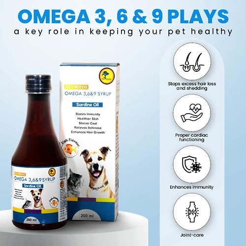 Specification: PETHEEDS Omega 3+6+9 Syrup Combo Concentrated Sardine Fish Oil with Vitamins, Minerals & Taurine, Advanced Formula for Shiny Healthy Skin & Coat for Dogs & Cats, Pack of 2-200ml Each
