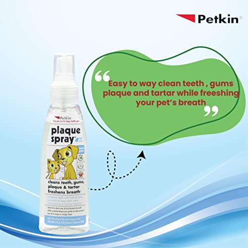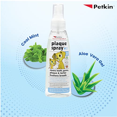 Specification: Petkin Cool Mint Plaque Spray for Dogs & Cats, No Brush Cleaning, Brightens Teeth, Freshens Breath, Easy Application, Daily Use, Remove Plaque and Tartar, 120 ml