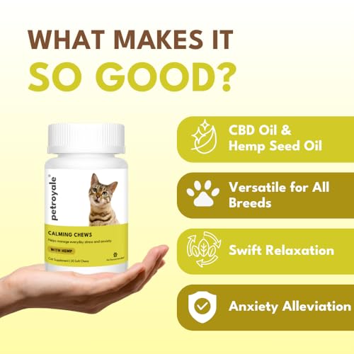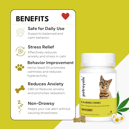 Specification: Petroyale Calming Chews for Cats | Reduces Anxiety in Cats | Eliminates Stress | Cat Behaviour Management | Non-Drowsy | Fast-Acting & Long-Lasting Relief | Suitable for Daily Use | 20 Chews
