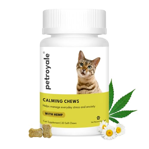 Petroyale Calming Chews for Cats | Reduces Anxiety in Cats | Eliminates Stress | Cat Behaviour Management | Non-Drowsy | Fast-Acting & Long-Lasting Relief | Suitable for Daily Use | 20 Chews