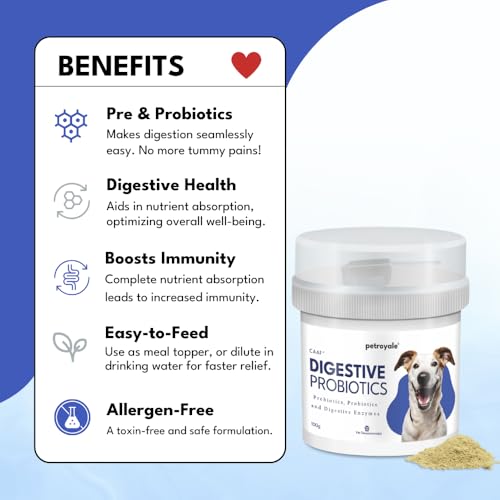 Specification: Petroyale Digestive Probiotics for Dogs – Prebiotics & Probiotics Supplement Powder – Improves Gut Health – Prevents Diarrhea & Indigestion – Dog Gut Wellness Supplement | 100g