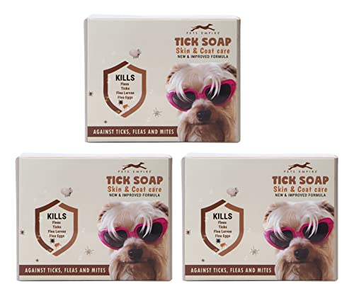 Specification: PETS EMPIRE Natural Handmade Dog Soap, 100g (Pack of 3) – Flea and Tick Advanced Strength Pet Soap Bar for Healthy Skin & Coat | Nourishing Antibacterial Flea Treatment Organic Soaps for Dogs