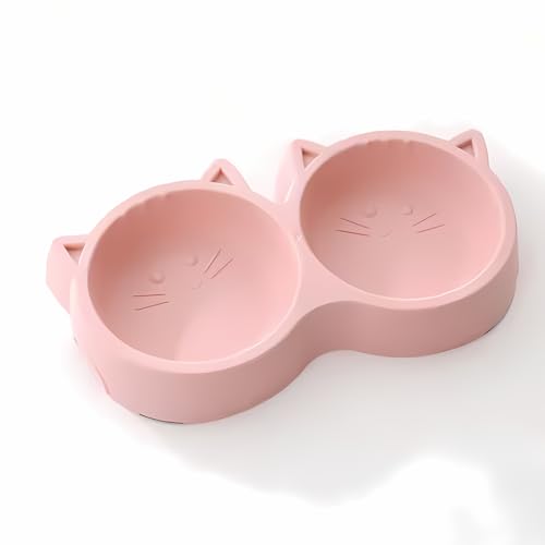 Pets Empire Non-Slip, Non-Toxic Pet Feeding Plastic Cat Face Shaped Double Bowl Food & Water Feeder 2-in-1 Bowl for Dogs and Cats (Pink).