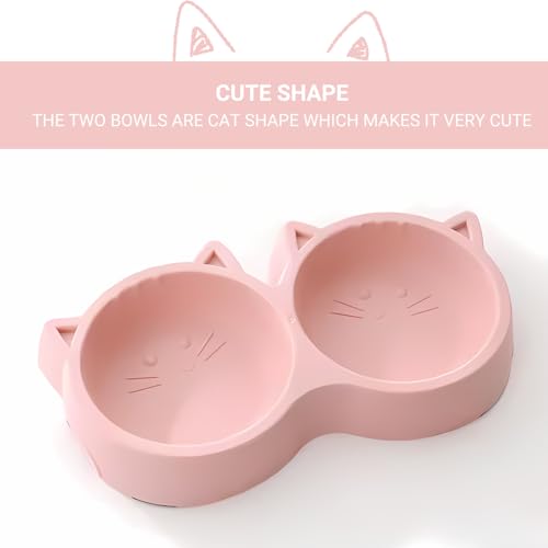 Specification: Pets Empire Non-Slip, Non-Toxic Pet Feeding Plastic Cat Face Shaped Double Bowl Food & Water Feeder 2-in-1 Bowl for Dogs and Cats (Pink).
