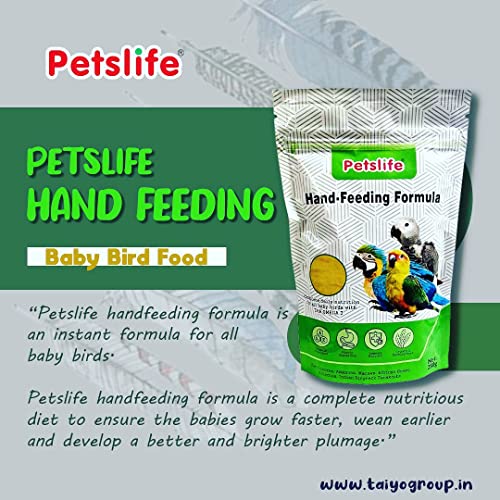 It is extremely important to follow the directions completely and thoroughly. Petslife hand feeding formula is mixed with clean hot water to a desired consistency. Feed the hungry baby with a special hand-feeding syringe. Hatchlings must be fed about every two hours, where 10-12 % of their body weight per feeding should be ensured by proper monitoring of their growth and health. Fresh formula should be done at every feeding. Proper hygiene should be maintained throughout the surrounding.