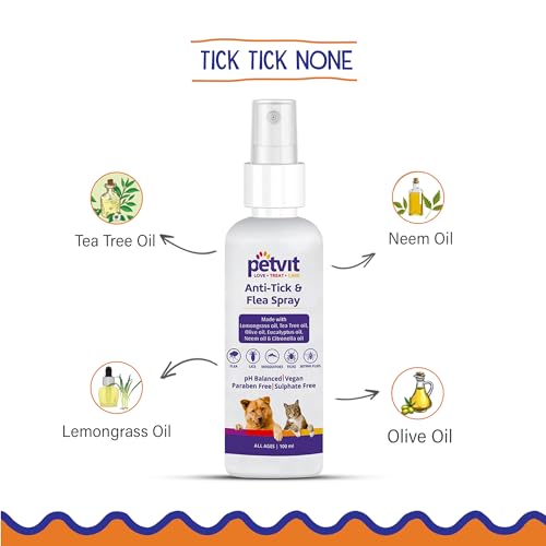 Petvit Tick Spray for Dogs | Ticks and Fleas Remover for Dogs | Dog Ticks Remover | Dog tick Spray | Tea Tree Oil | Neem Oil | Anti tick Spray for Dog – 100ml (Pack of 1)