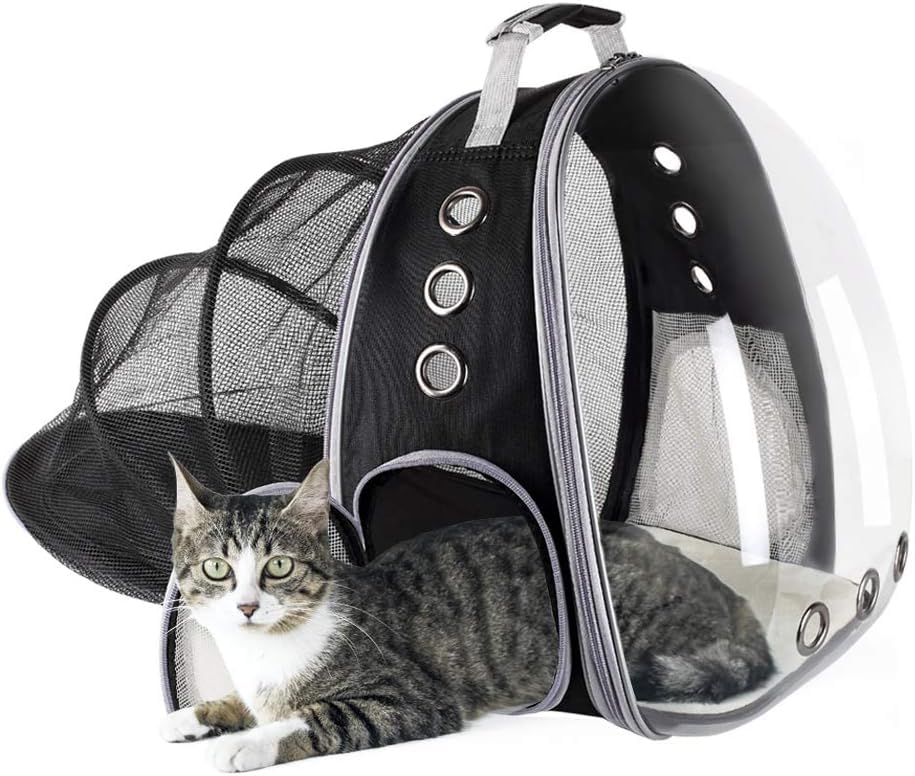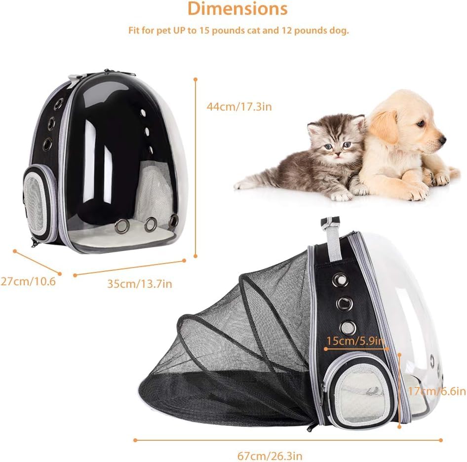 Specification: PetVogue Cat Carrier Backpack, Transparent, Expandable Pet Backpack for Small Dog Cat with Mat for Travel, Hiking, Walking & Outdoor Use – Black