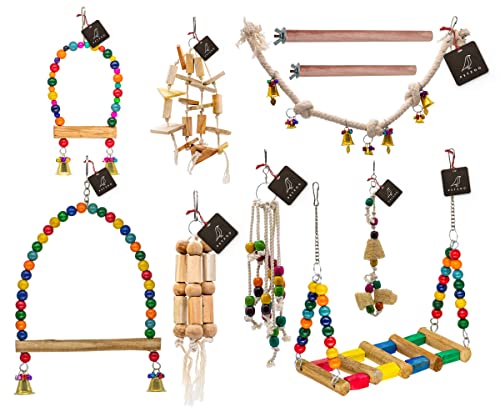 PETZOO Combo#2 Of 10 Playful Bird Toys Which Includes Bird Swing, Perches, Rope Toy, Bird Toy For Birds, Pet Toy, Parrot, Cage Accessories & Wooden Training Aid For Bird & Parrots (Best & Recommended)