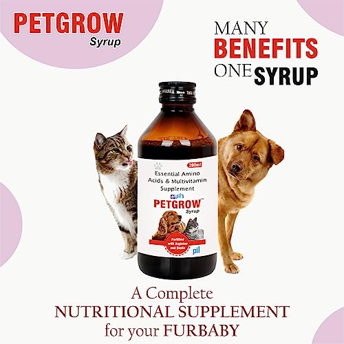 Specification: Pil Pet Grow Syrup for Dogs & Cats 200 ML with Amino Acid, MultiVitamins, Minerals & Taurine, Advanced Skin & Coat Formula, Fortified with Arginine and Biotin