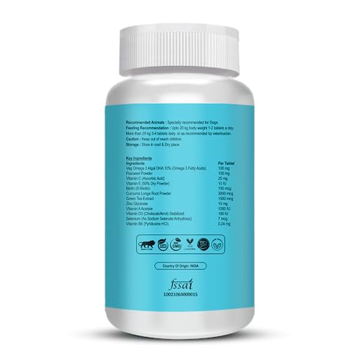 Supports coat luster and shine: The combination of nutrients, including biotin and vitamin E, helps promote a glossy and vibrant coat. These tablets work to strengthen hair follicles, reduce shedding, and enhance coat color and texture.
