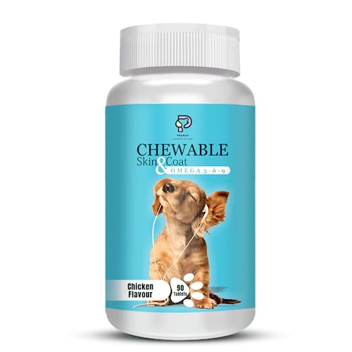 Specification: PRAWSH Chicken Flavour Chewable Skin & Coat Tablets for Pets with Omega -3,6,9, Dog Skin Care, Dog Supplements, Skin Coat for Dog Puppy Kitten- 90 Tablets