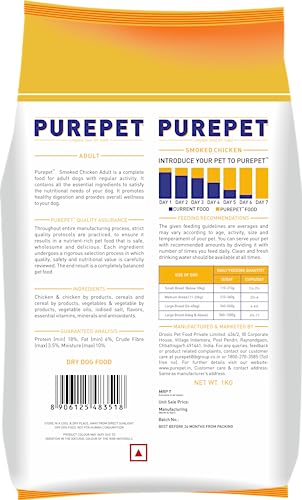 Specification: Purepet Adult Dry Dog Food Smoked Chicken 1kg Pack